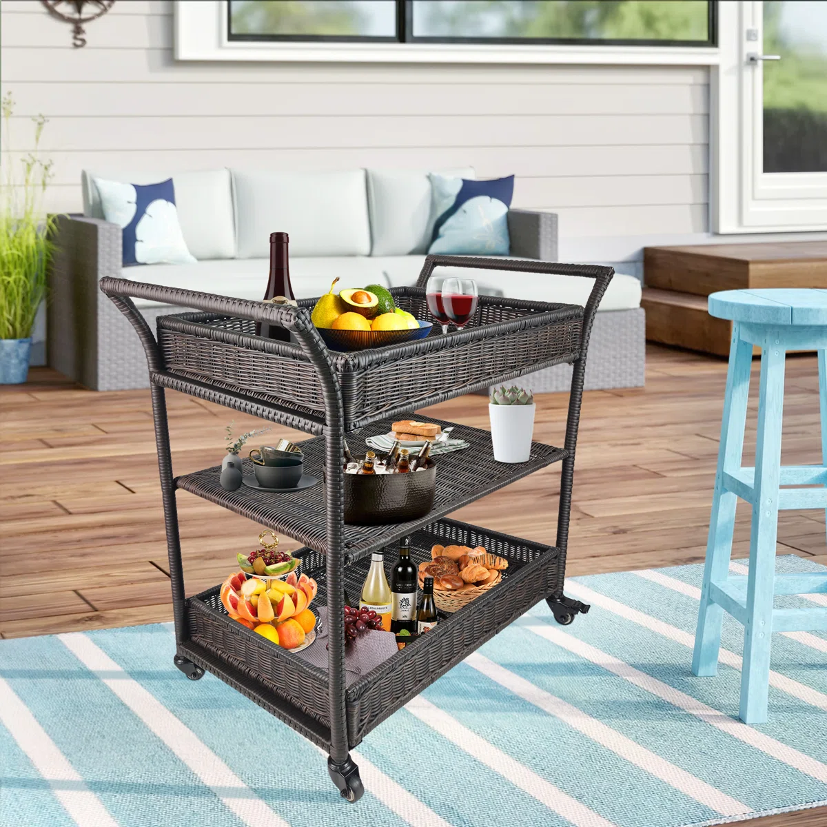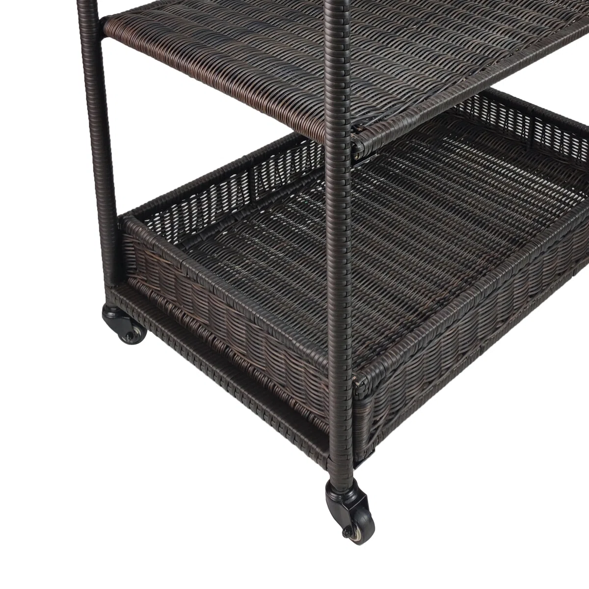 Outdoor Wicker Bar Cart,Patio Wine Serving Cart