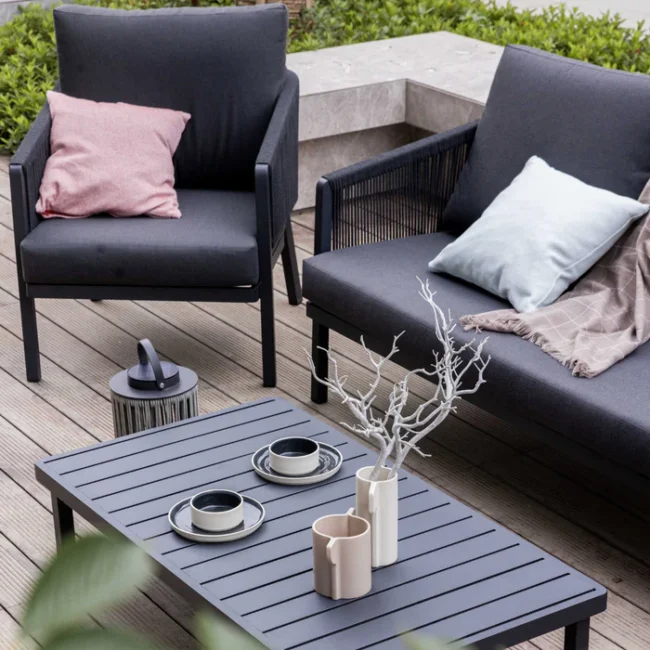 Marcela Outdoor Sofa Set 3 Seater, 2 Single seater and 1 Center Table Set (Grey) Braided & Rope