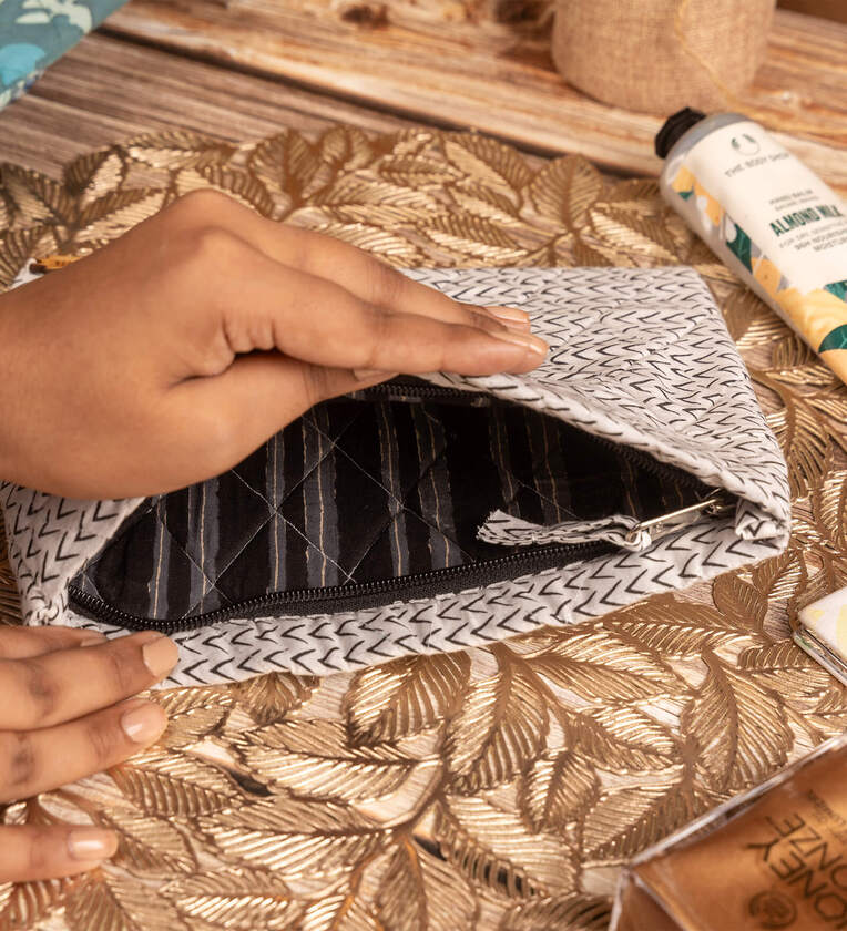 Black & White Cotton Fabric Travel Pouch 9 X 7