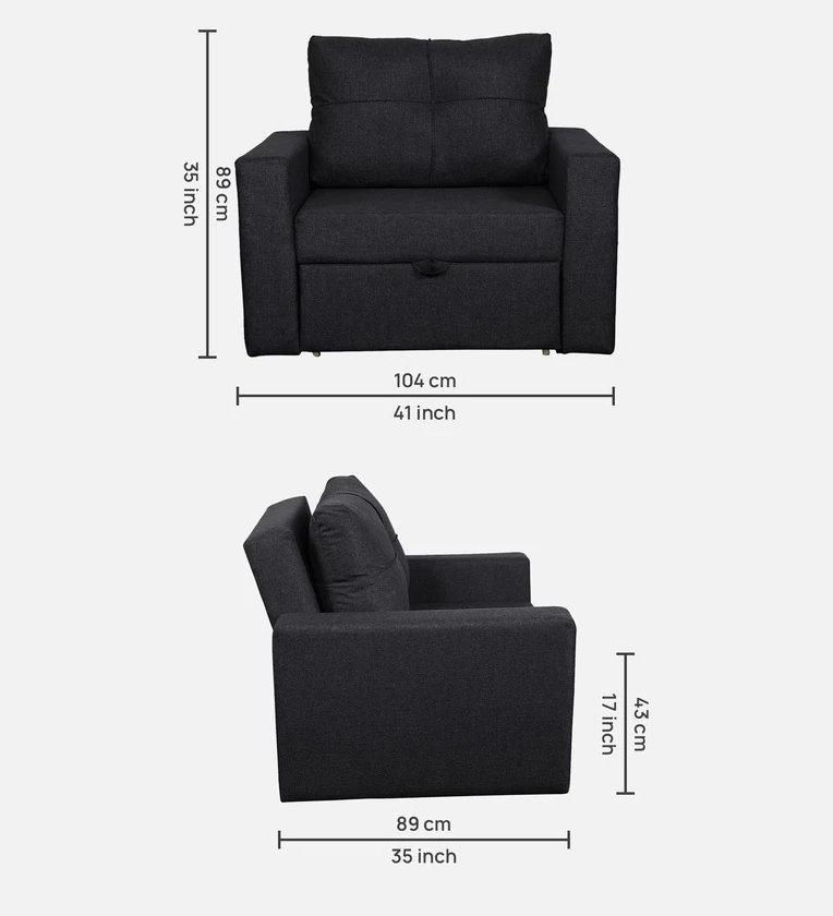 Eden Fabric Sofa Cum Bed in Charcoal Grey Colour