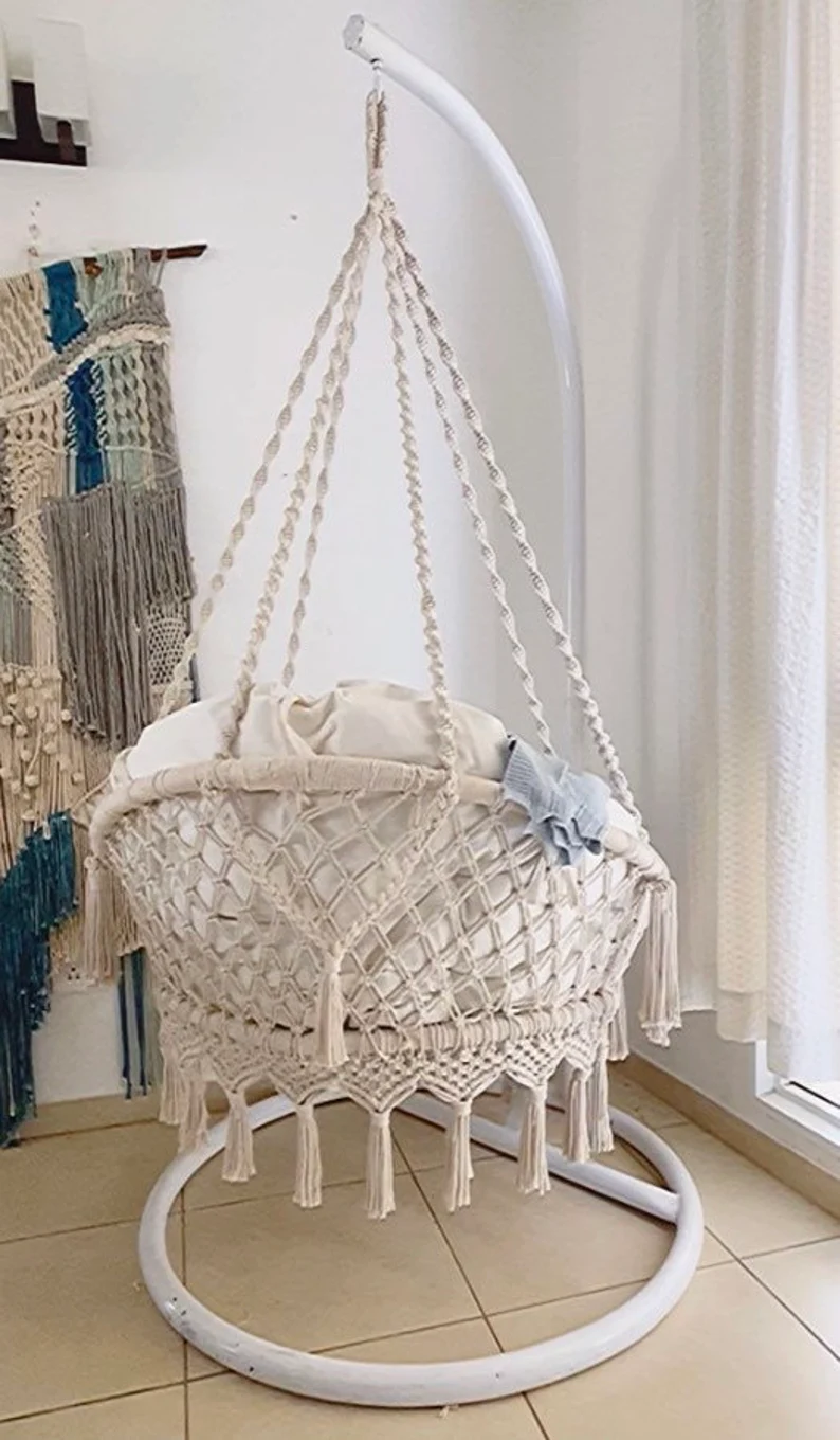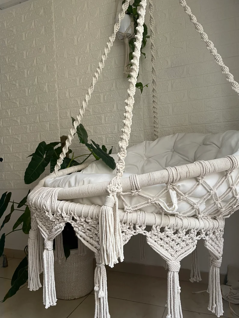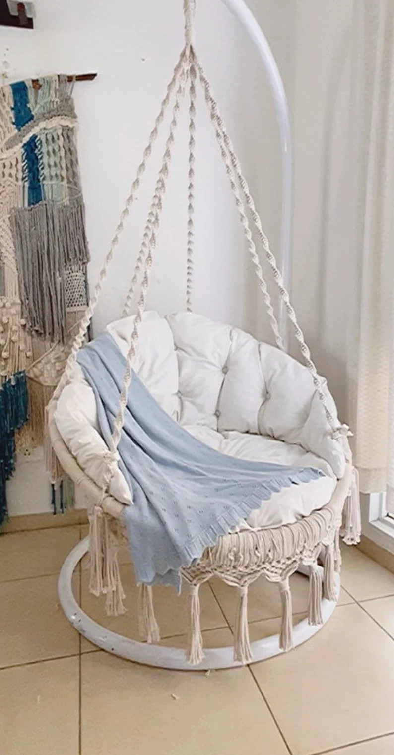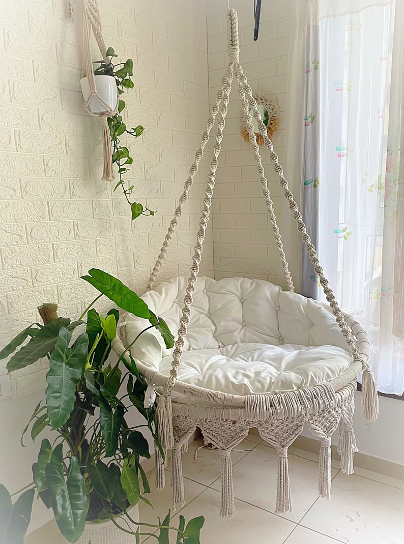 Pico Single Seater Hanging Swing With Stand For Balcony , Garden (White)