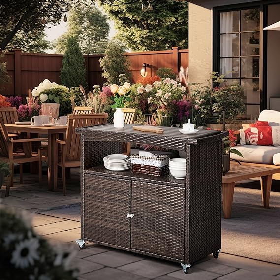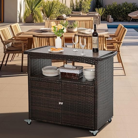 Outdoor Wicker Serving Bar Cart